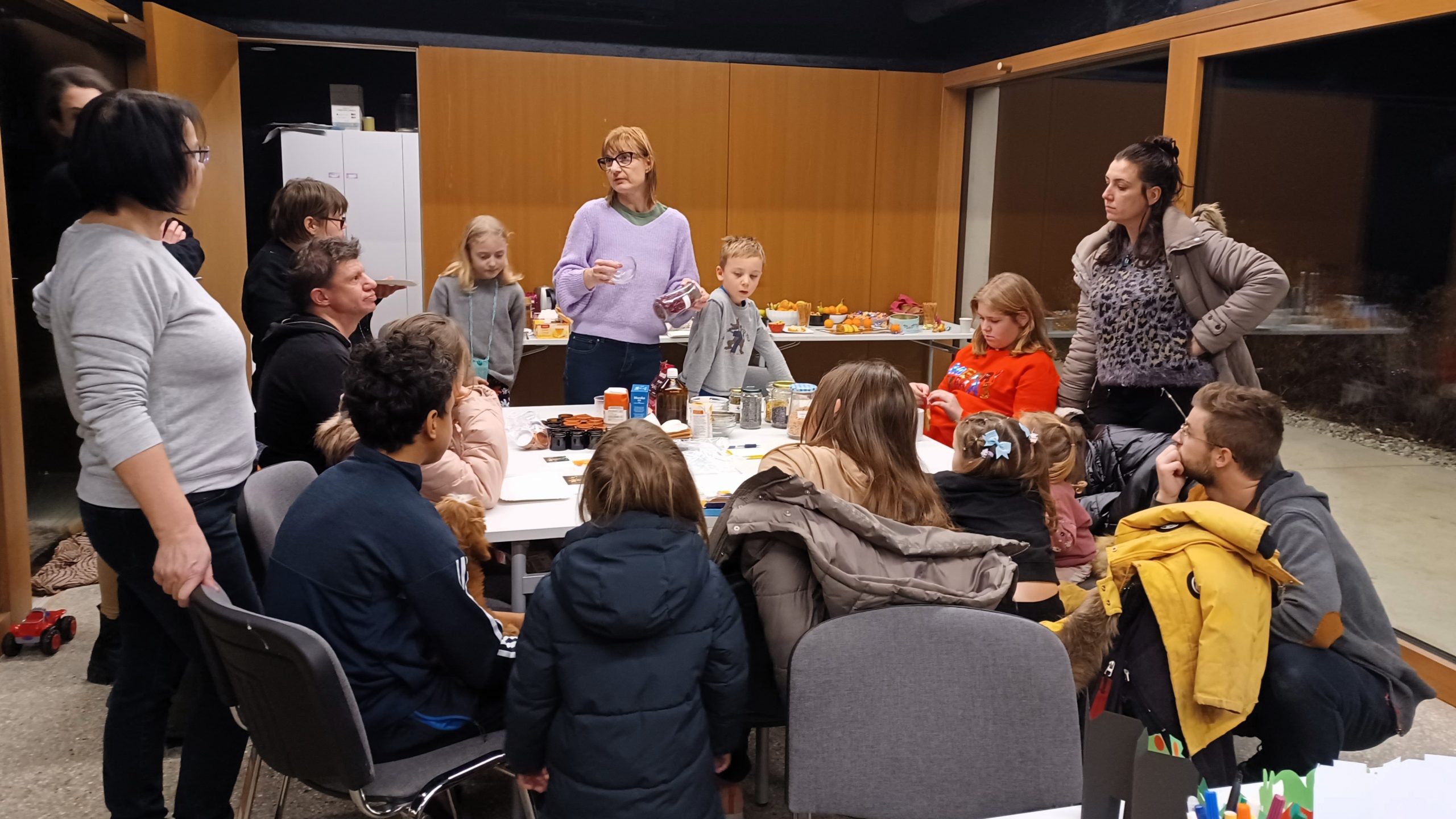 Stanovalce, tudi najmlajše, smo podprli pri izvedbi dejavnosti v paviljonu glede na njihove ideje. Izvedli smo skupnostno praznovanje ob dveh priložnostih – v prednovoletnem času z izdelavo naravnih darilc in ob pustovanju s poslikavo obrazov. Stanovalke smo podprli pri organizaciji redne tedenske vadbe joge. Ob sredah zvečer pa smo si v zimskih mesecih krajšali dolge dni z družabnimi večeri, ki smo jih poimenovali Srede v paviljonu. Zaključili smo s koncertom Čaietno v okviru Kavč festivala.