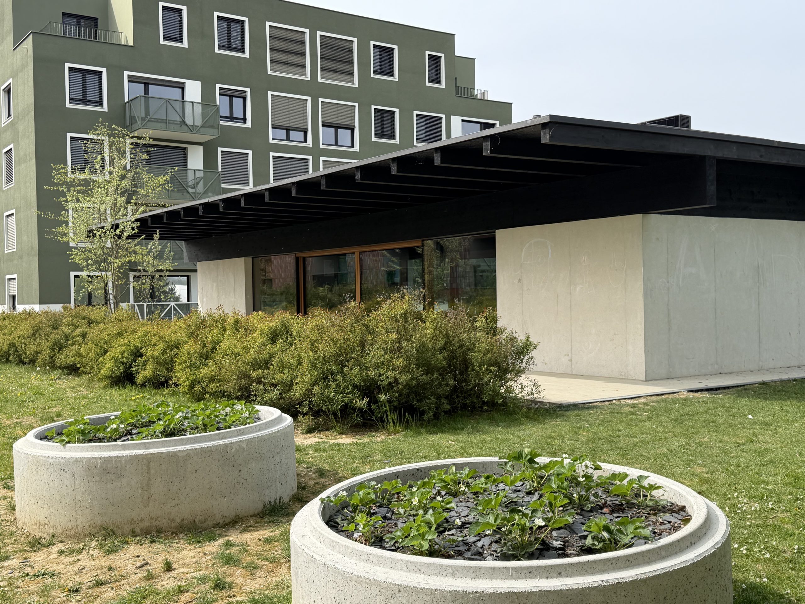 Poleg tega so stanovalci v lanskem letu samoorganizirano vzpostavili visoke grede in jih nasadili z jagodičevjem, za izvedbo česar so uspešno pridobili nekaj sredstev preko razpisa Mestne občine Ljubljana Zunaj. Se že veselimo zobanja prvih jagod iz skupnostne gredice!